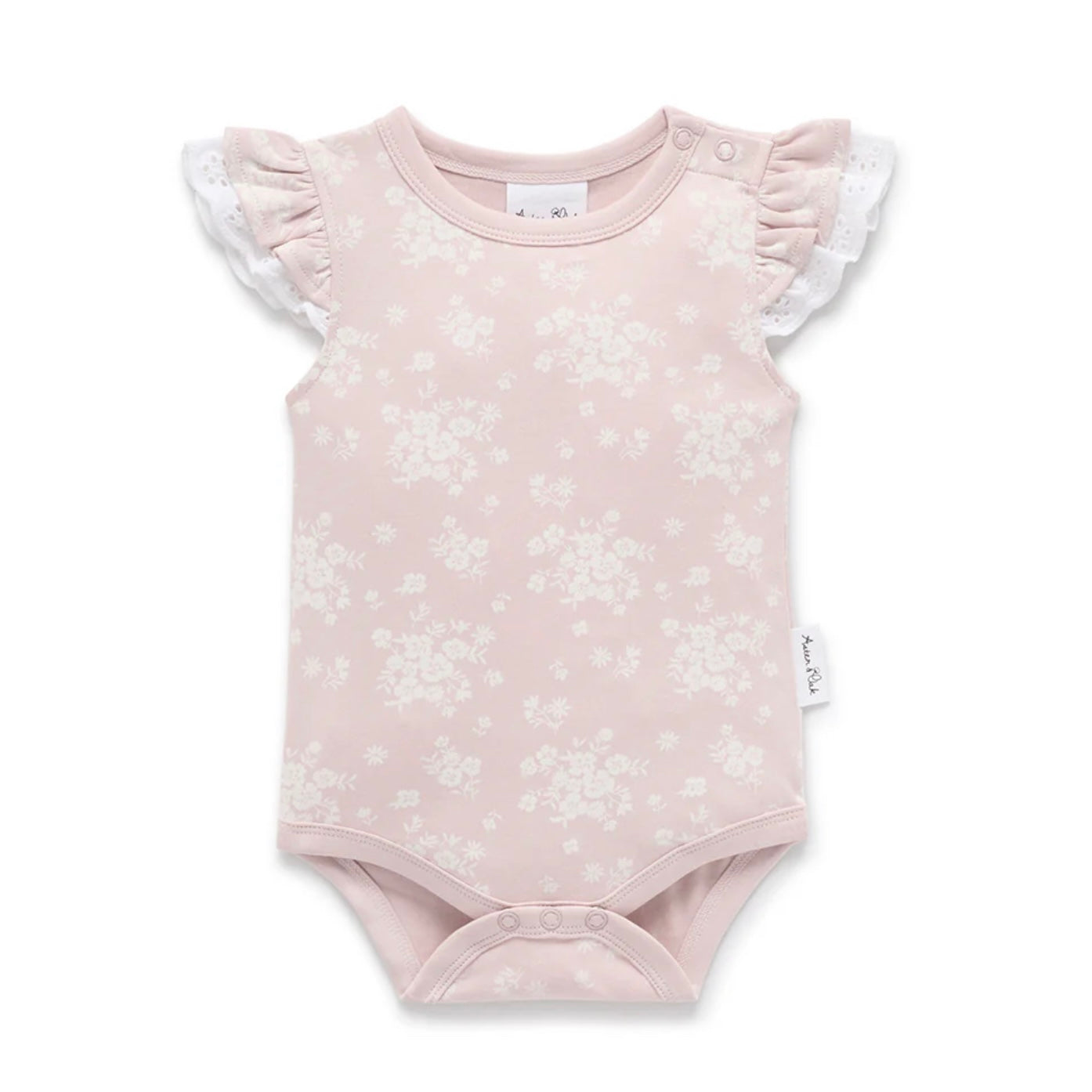 Designed with delicate charm and everyday comfort in mind, our Eve Floral Onesie features contrasting white florals over a soft rose palette and is finished with sweet ruffles and lace for elevated style.