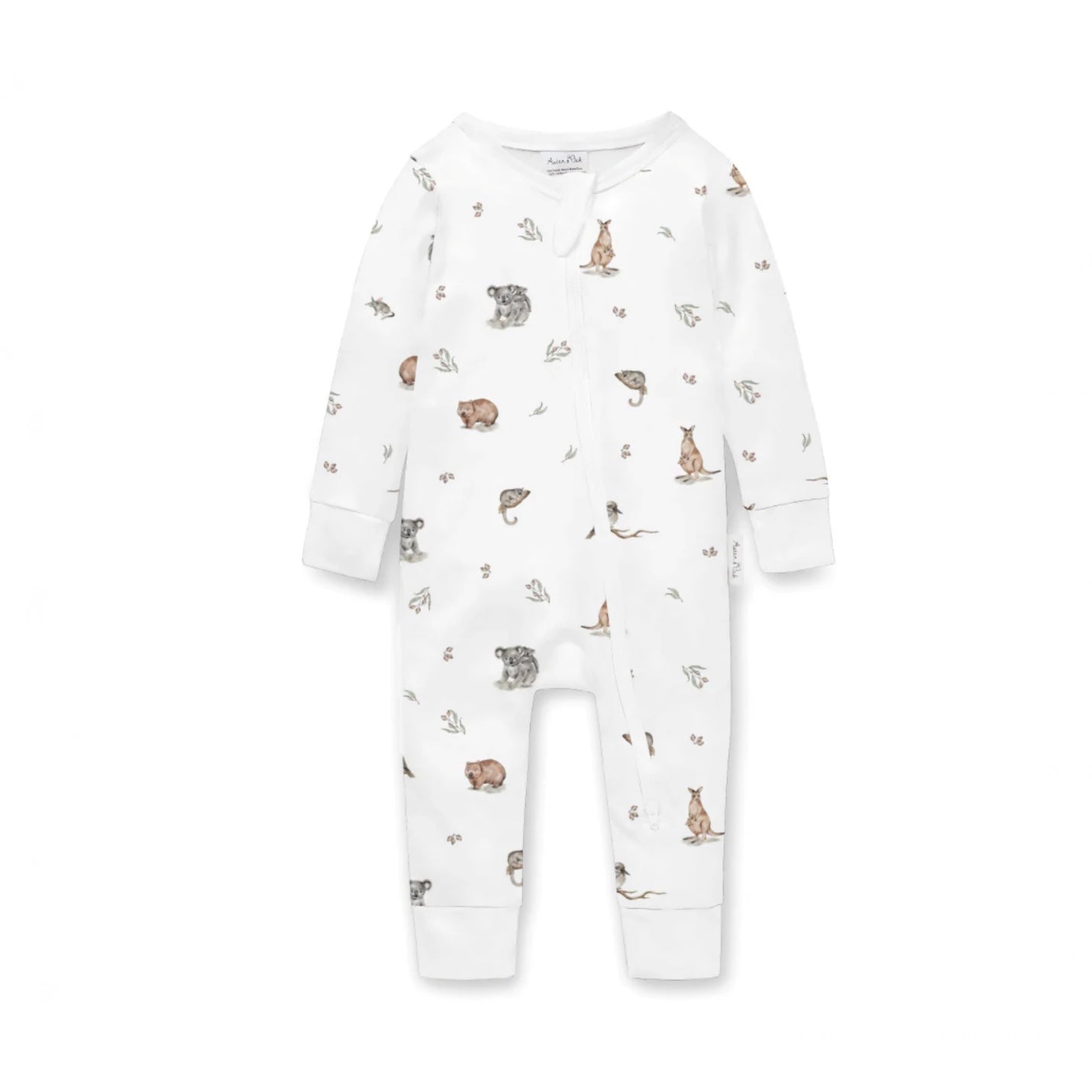 Snuggle your little one in our Australian Native Animals Zip Romper.