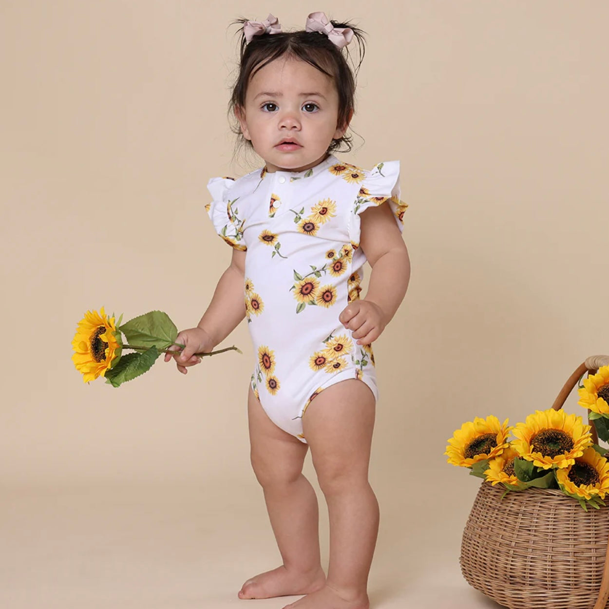 Sunflower Short Sleeve Organic Bodysuit with Frill