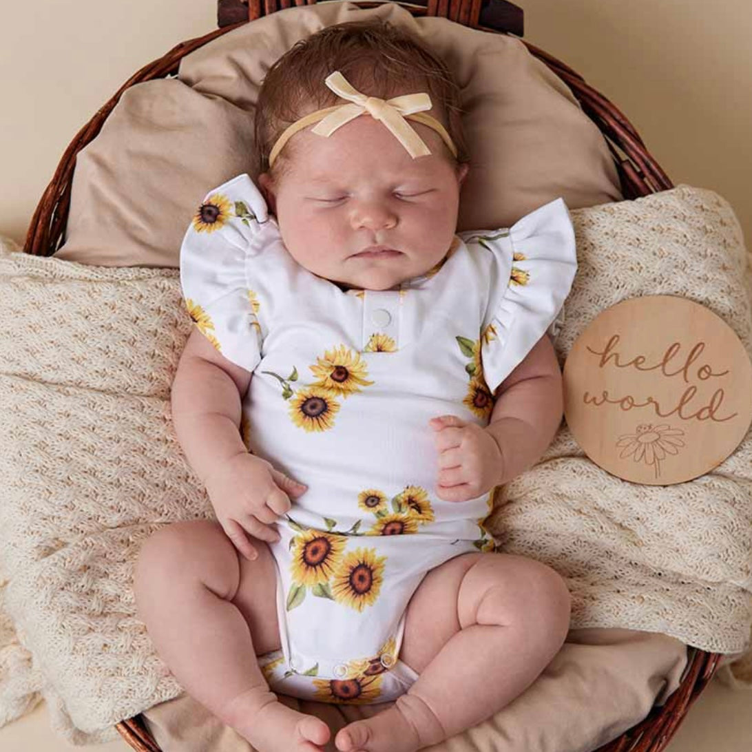 Snuggle Hunny organic bodysuits are made for babies and toddlers and our exclusive Sunflower print is beautiful and perfect for baby girls. This bodysuit is short-sleeved, perfect for warmer weather, and under layers.