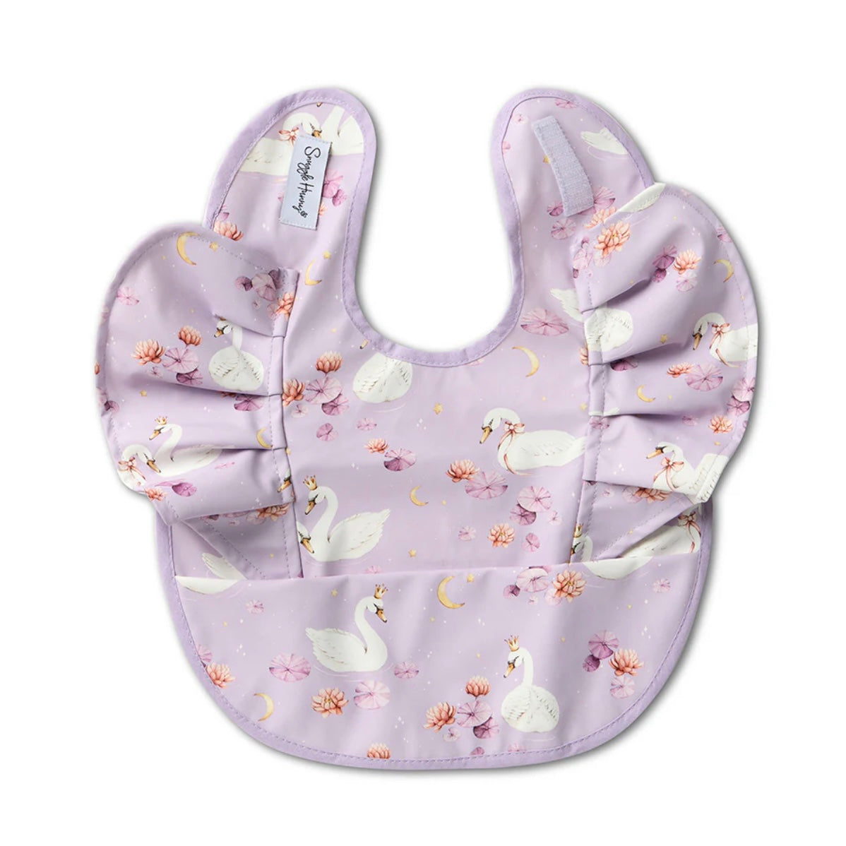 Our Snuggle Hunny bibs are a beautiful way to brighten up mealtimes whilst keeping mess to a minimum. This bib features our exclusive Snuggle Hunny Swan Lake design with our signature frill. Perfect for baby gifts.
