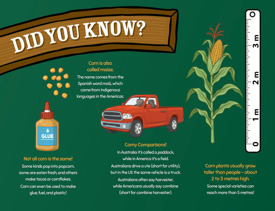 With 16 full-page colour illustrations, this 32-page story is a fun and educational way to teach kids about corn, fungi, food waste, and global farming— perfect for ages 2–10.