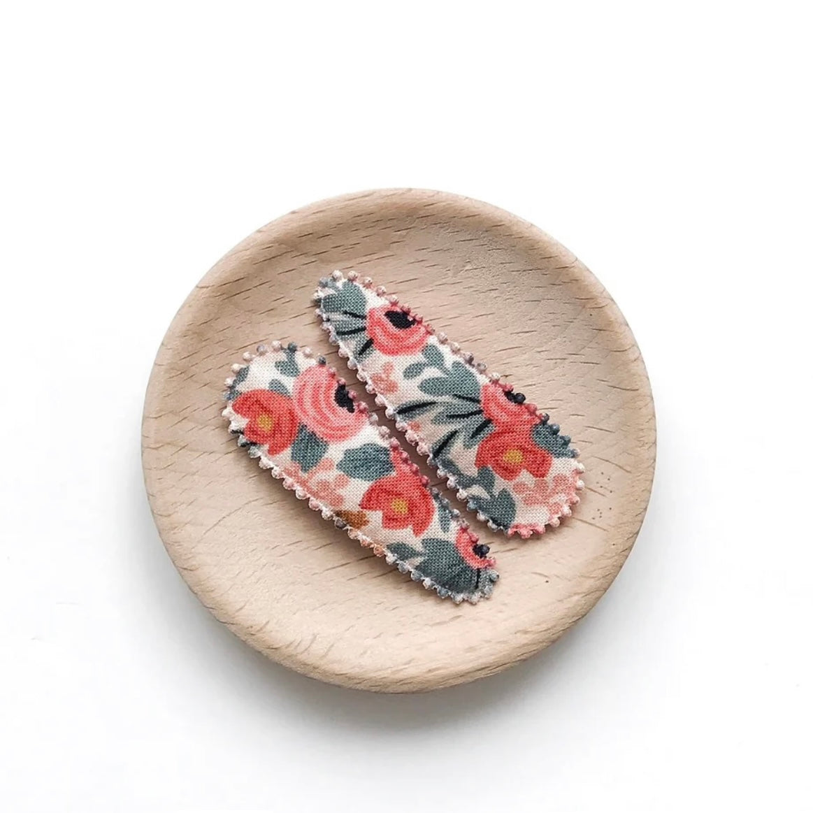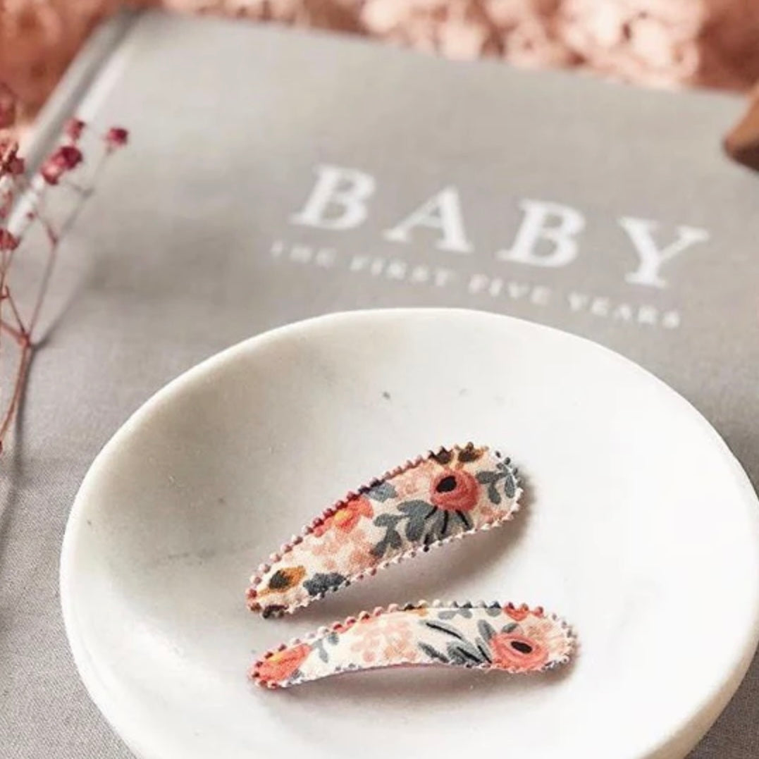 Sold in sets of two these timeless hair clips are finished using a range of Liberty London prints along with a selection of fabrics designed by The Rifle Paper Co.