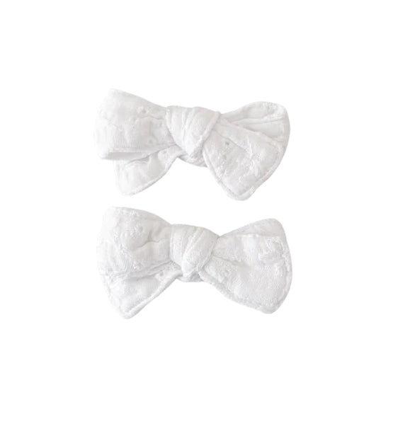 2 x cotton bow hair clips in our Laurel broderie anglaise fabric.