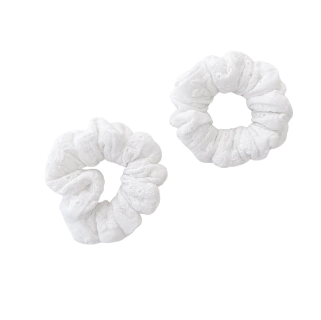 Lightweight cotton scrunchies in our Laurel broderie anglaise fabric.