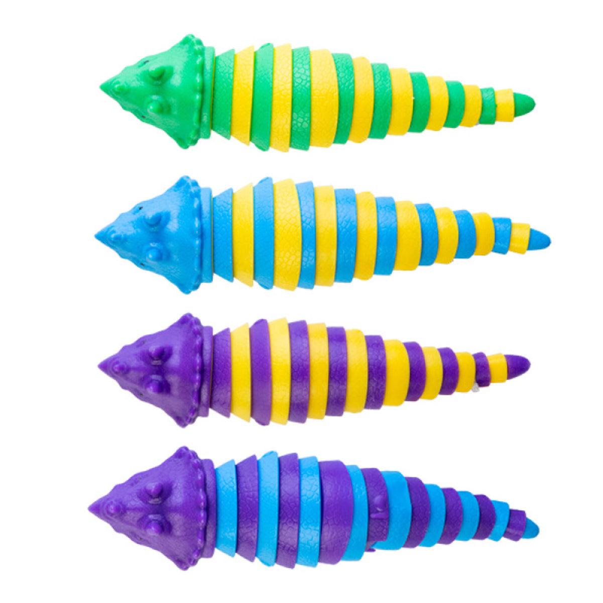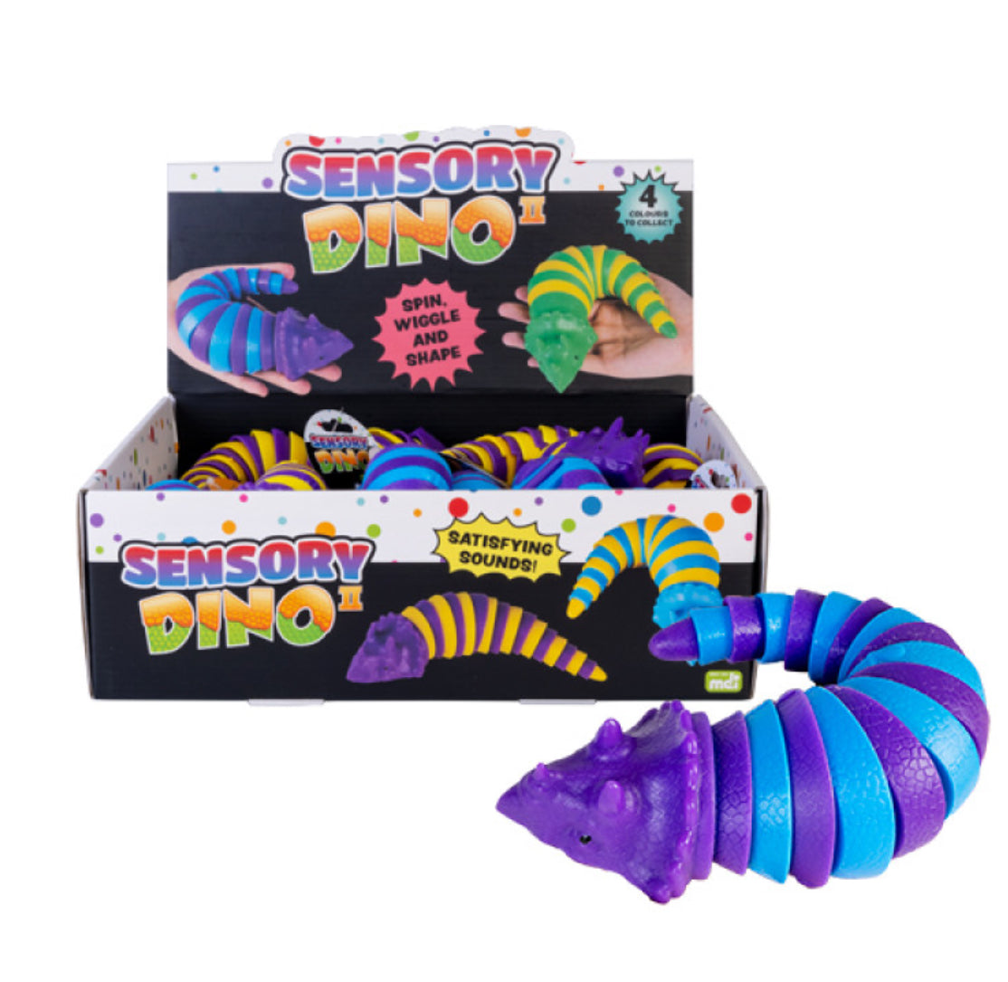Wiggle into fun! The Sensory Dino is the perfect toy for relaxation and fidgeting fingers. Its articulated body provides visual, auditory, and tactile sensations. With bright colours and lots of satisfying ASMR clicking sounds, it's sure to stimulate the senses!