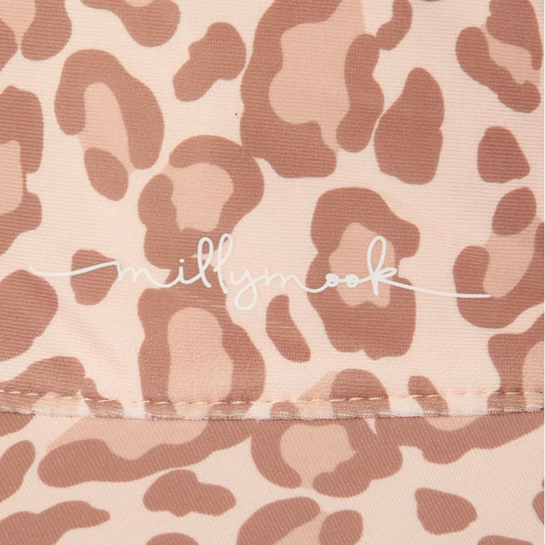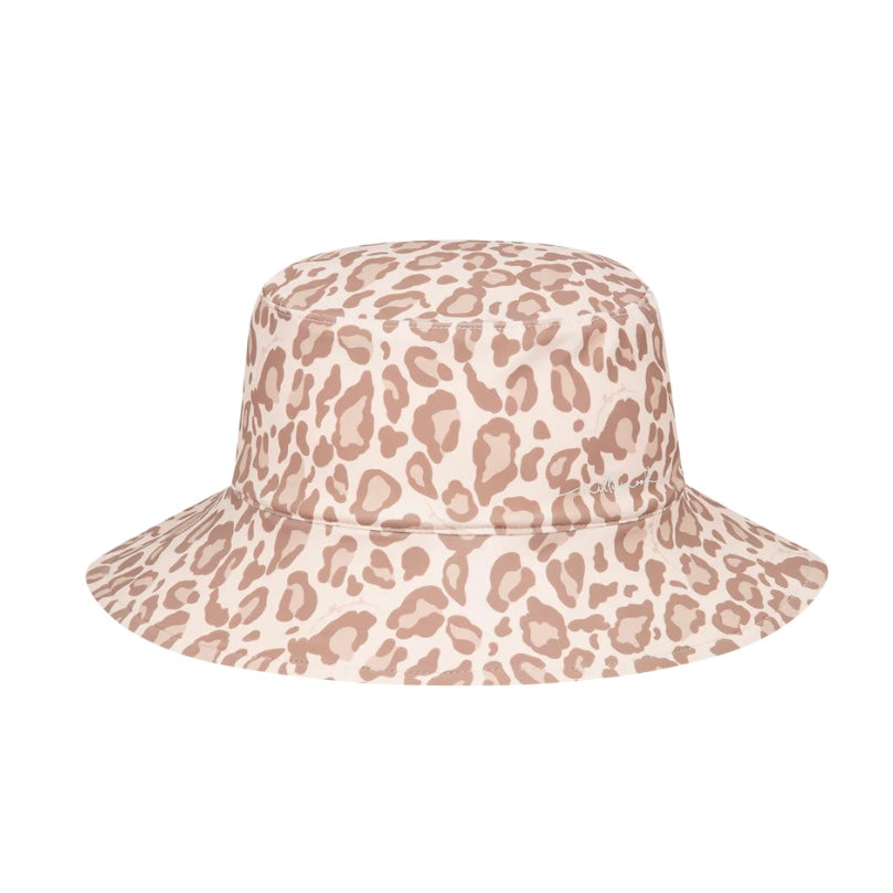 - The girls Claire ponytail bucket Is your classic bucket hat style, it features a subtle leopard print design on one side and a pink fabric on the other. This hat will make any summers day fun and playful.