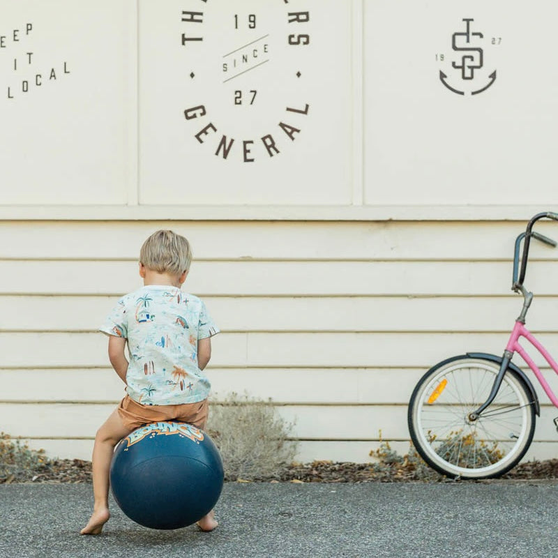 From beachside naps to sunny morning strolls, this baby tee captures the spirit of a coastal summer. With its laid-back surf scene print and comfy cotton stretch jersey, it's made for little adventurers ready to roll with the tide. Pair it with the matching Boys Aqua Green Shorts for a playful coordinated look.