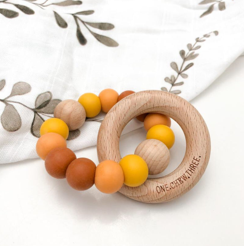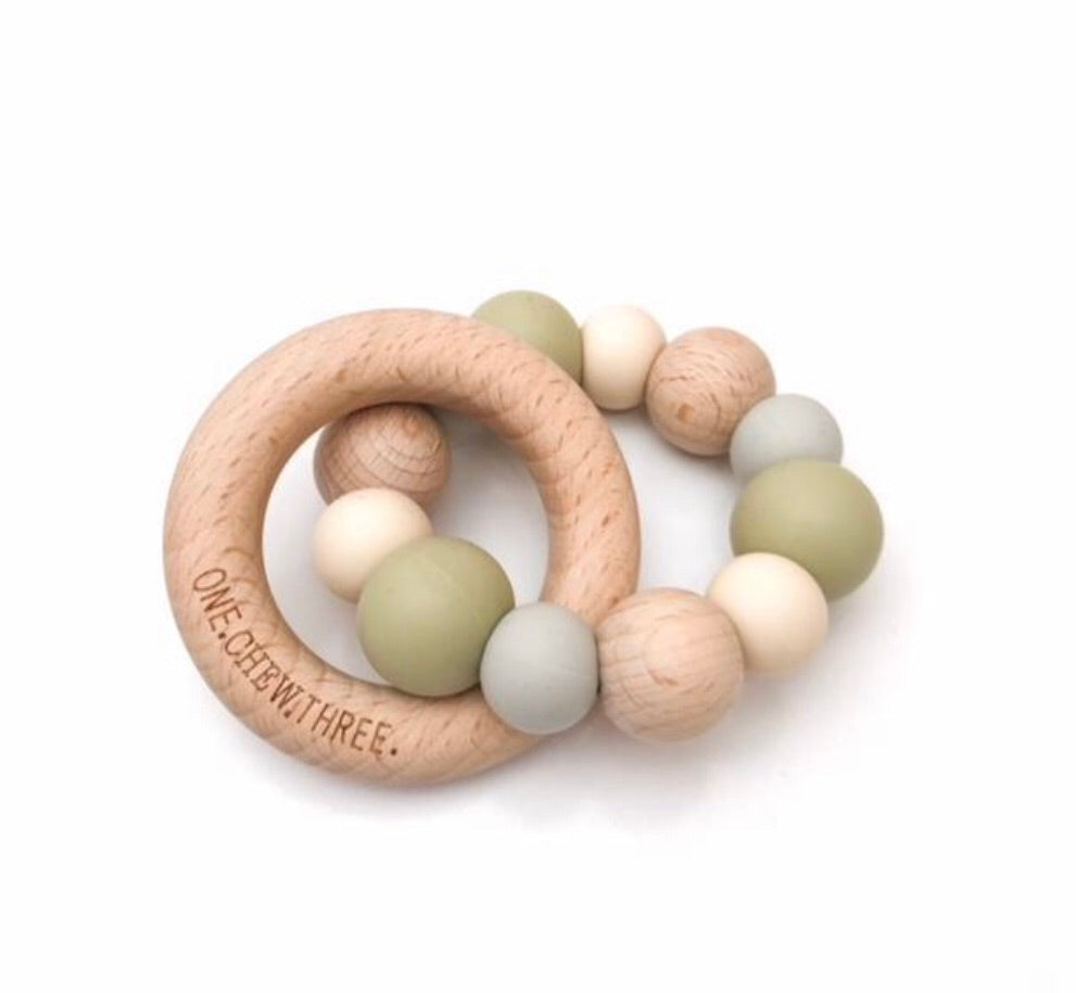 Single Rattle Silicone Beech Wood Teether