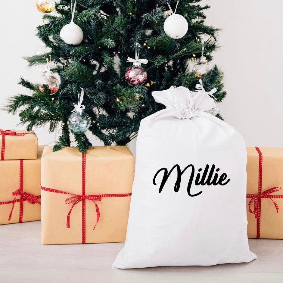 Luxury Pom Pom Santa Sack with Gold Christmas Font