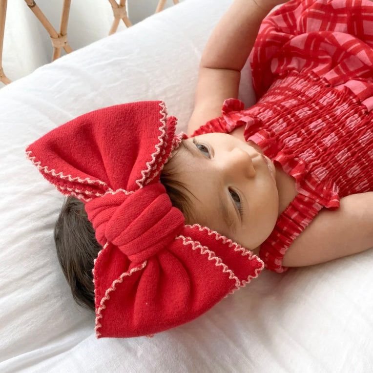 Beautiful thin knit and soft headband in our Scarlet colour with contrast colour trim. Mix and match with items from our Christmas Collection.